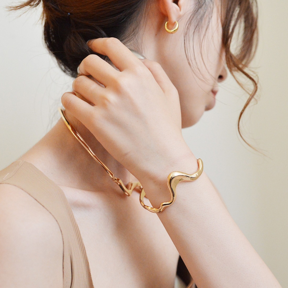 【ゴールド×ワンサイズ】[Cream dot. クリームドット公式] バングル レディース 金属アレルギー ニッケルフリー 変形 カーブ ウェーブ ぷっくり メタル 大人