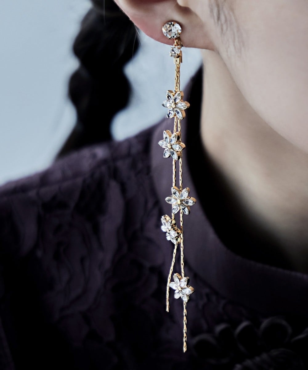 綺麗かつ愛らしいフラワーモチーフが耳元で品よく揺れうごく。