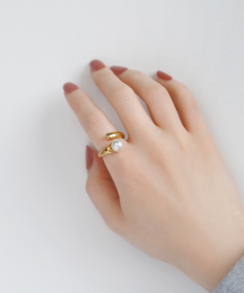 照りツヤ淡水パールのフォークリング #プチプラさびねこクラブ 50722
