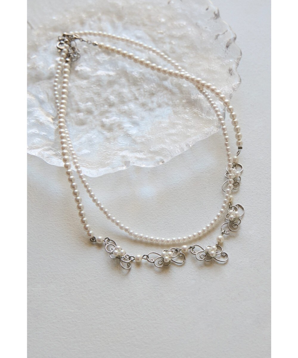 niana ニアナ 目を惹くメタルモチーフに小粒パールを飾り付けた2連ネックレス。