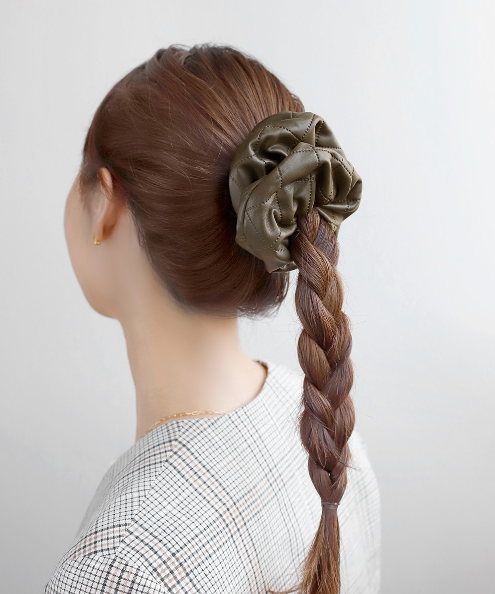 レザー調とキルティングの組み合わせが、こなれたうしろ姿へと導いてくれるシュシュ。