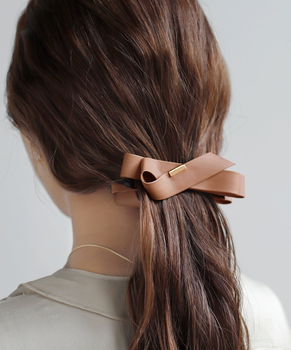 しっとりとしたレザー調の生地が、うしろ姿に上品な甘さをプラスするバナナクリップ。