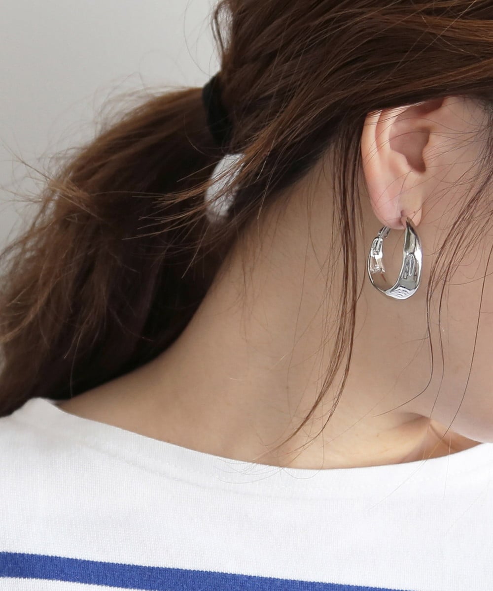 大きめの凹凸を着けて、力強くもしなやかなラインがクラフト感のあるメタルピアス。