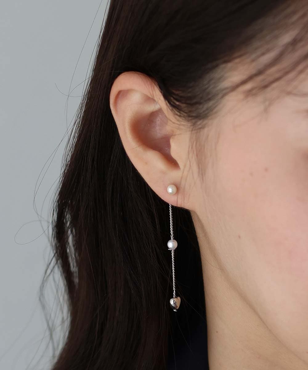 小ぶりなパールとハートモチーフが連なったロングピアス