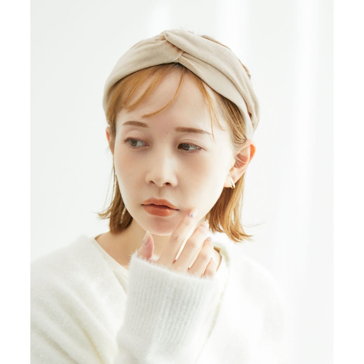 【クラシックなヘアスタイルに導くベロアのカチューシャ。】