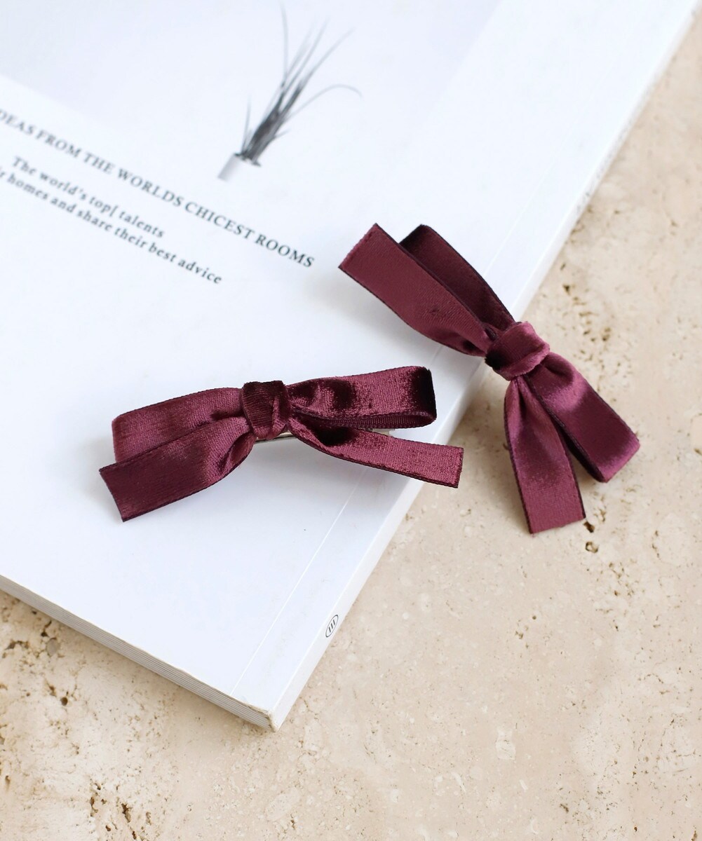 艶めくベルベット生地のリボンモチーフが、うしろ姿に華やぎを与えるバレッタ。