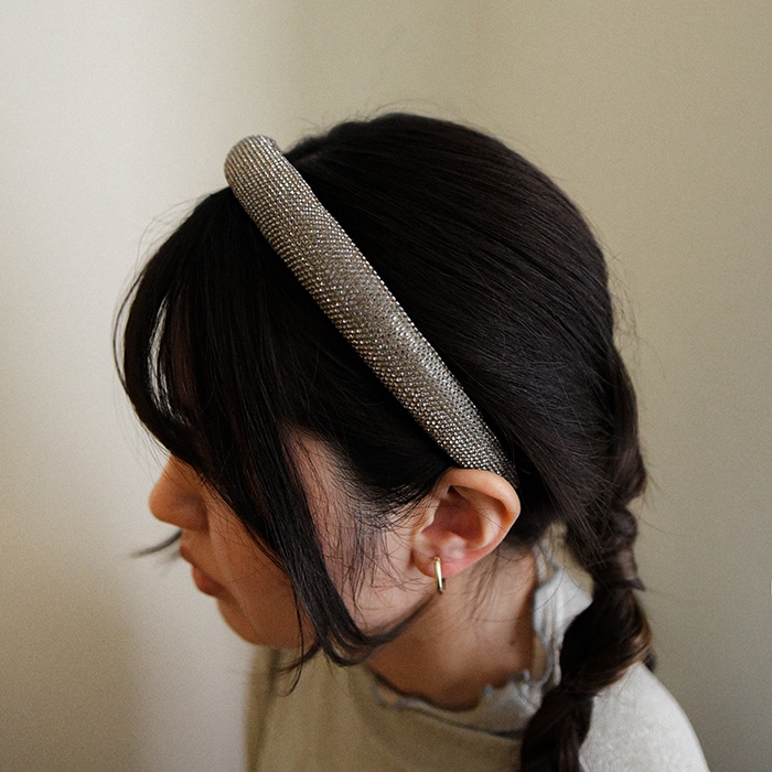 ビジュー付きカチューシャ ブラック 黒