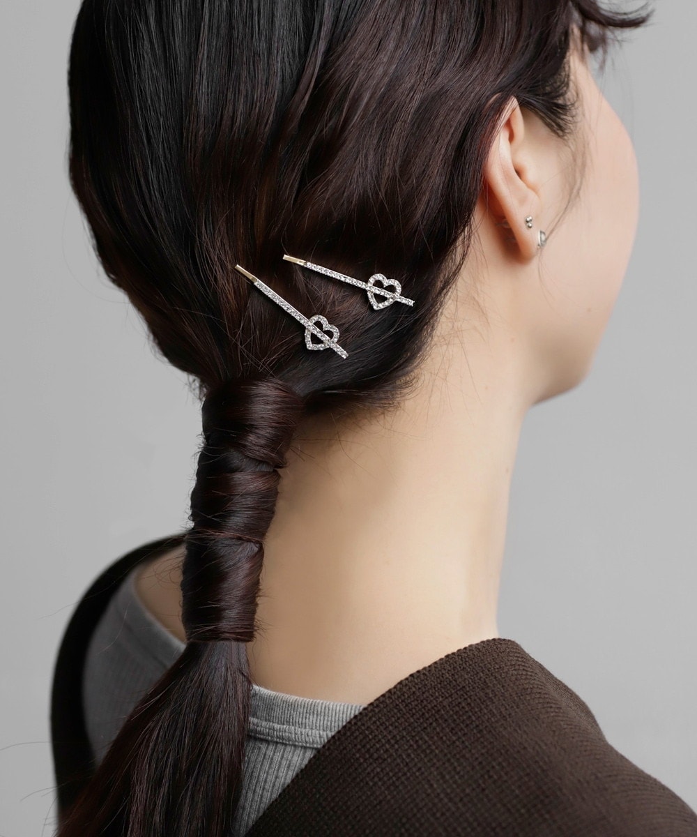 ヘアピンエクステ No.53 ハート&ビジュー(カール) 2本セット