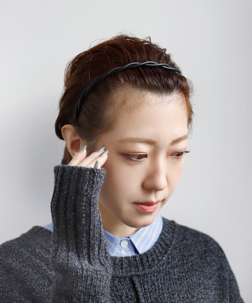 マットな質感のツイストデザインが、こなれた大人カジュアルな装いに仕上げてくれるカチューシャ。