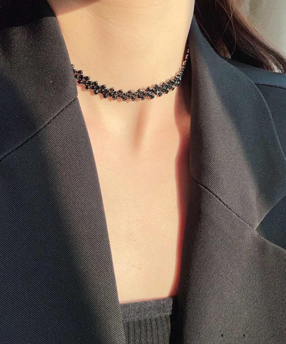 トレンドのラインストーンネックレスが登場