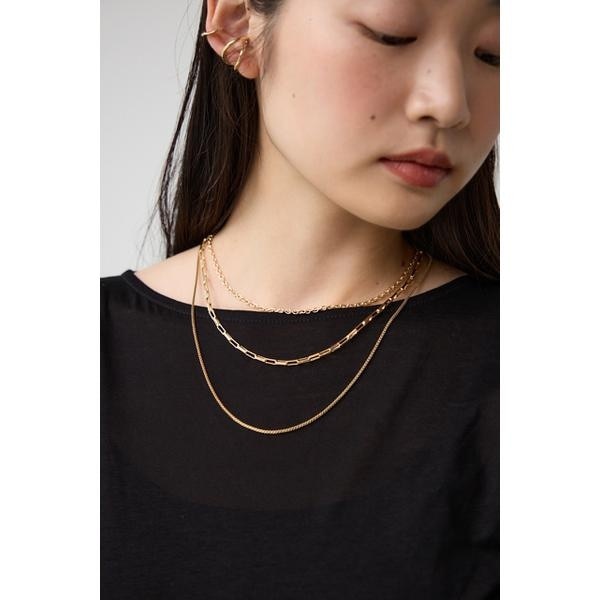 2024 Autumn&Winter item ■商品(デザイン)ポイント 異なったデザインのチェーンが重なり合った3連ネックレス。 ■商品ディティール シンプルでありながらも存在感のあるアクセサリーで、どんな装いにもマッチします。 水に強く錆びにくいステンレスの素材を使用しており、耐久性があり長持ちします。 また、アレルギーを引き起こしにくいのも魅力です。 3本のチェーンが美しく重なり合い、モダンで洗練された印象を与えます。 首元を華やかに飾り、スタイリッシュなアクセントを演出します。 【ステンレス素材】 ◯ 水や汗に強いので錆びにくく、変色しにくい。 ◯ キズがつきにくい。 ◯ 金属アレルギーが比較的起きにくい。 ※長期間の使用による劣化や個人の体質などによっては、金属アレルギーを引き起こすこともございます。 予めご了承ください。