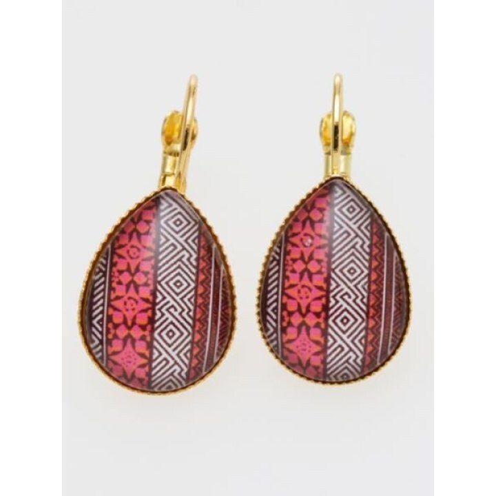 ♥️ダークシャムレッドのチェコドロップ♪シンプルノンホールピアス ハンドメイド