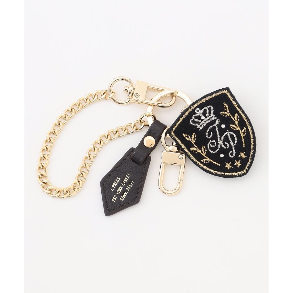 バッグキーチャーム・ワッペンブローチの2wayで使用出来るバッグチャーム。ワッペンは日本の一ノ宮で作成したこだわりの品質で、日本でしか表現できない繊細な表現のステッチ、輝くラインストーン、J.PRESSオリジナルのデザインです。ワッペンはピンで取り外すことができ、単体でニットやブレザーに付けて頂けます。また本体はバッグチャームとしてはもちろん、キーホルダーとしてもご使用頂け、汎用性抜群です。J.PRESSのロゴが刻印された本革のタグ付きで、上質な印象に。JAPANクオリティの品質の良さが魅力で、ギフトにもおすすめのアイテムです。#005はメタルチェーンのフックにエンブレムデザインのワッペンブローチ、#105はメタルチェーンのワッペンにイカリデザインのワッペンブローチ、#205はパールのフックに王冠デザインのワッペンブローチの組み合わせです。