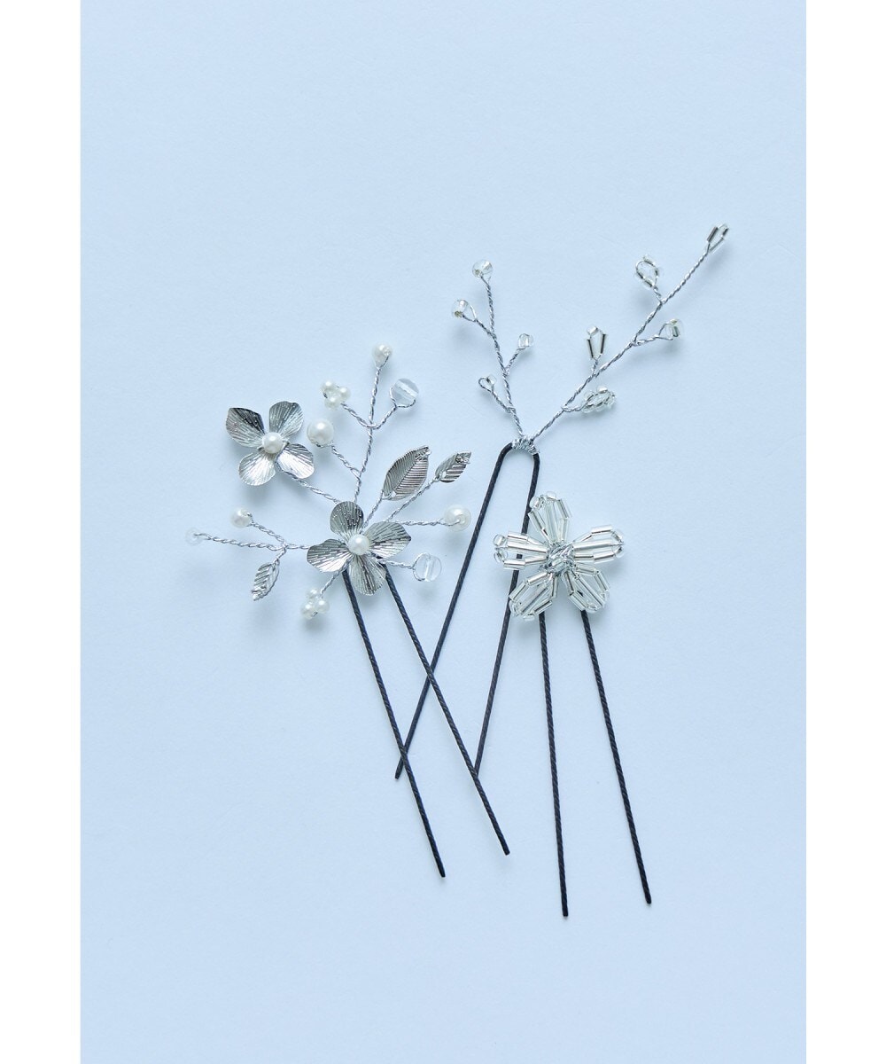 niana ニアナ メタルフラワーやビーズで形どったフラワーモチーフのヘアピン3本セット。