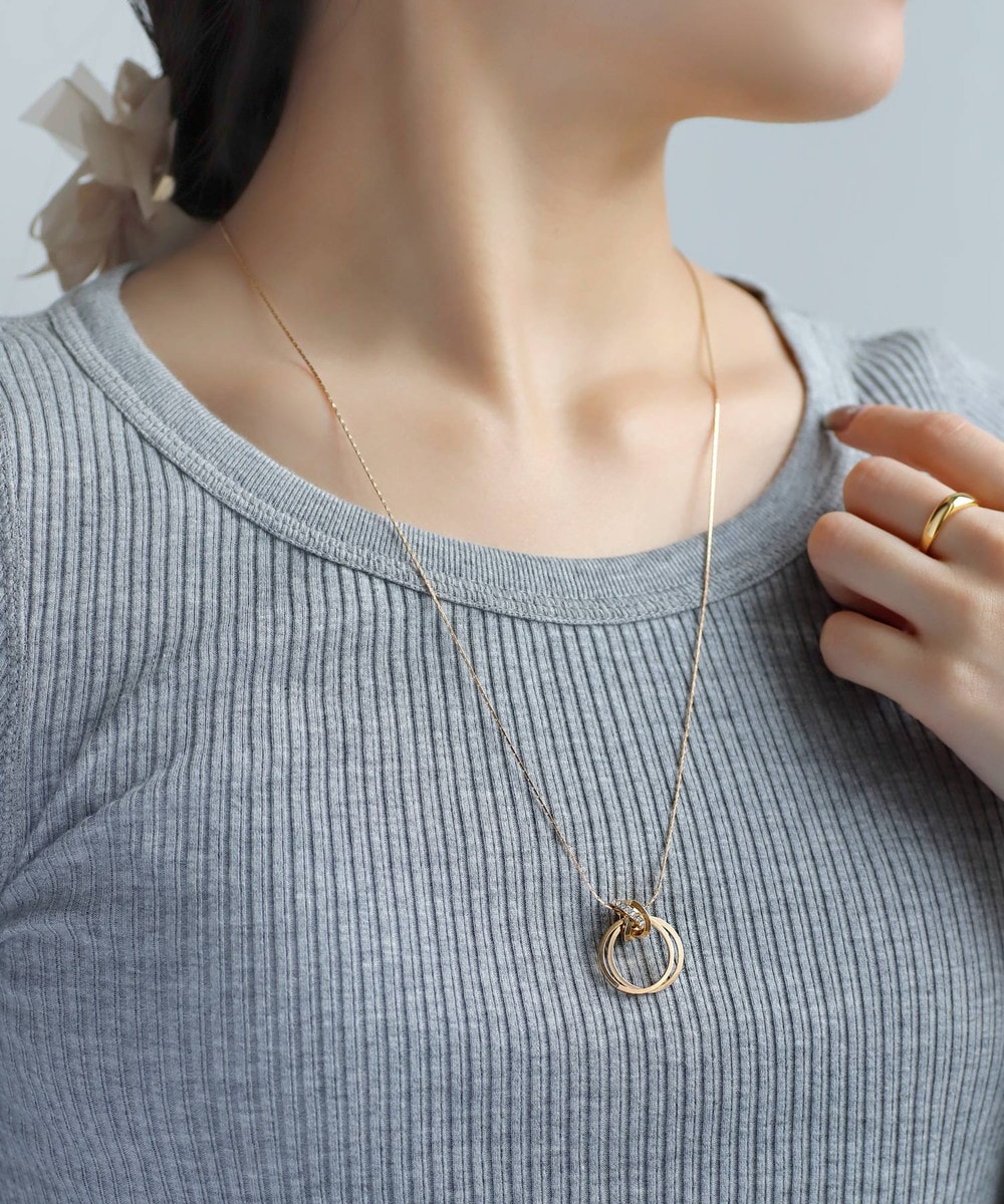 存在感のあるサークルモチーフがアクセントになり、胸元をこなれた印象に導くネックレス。