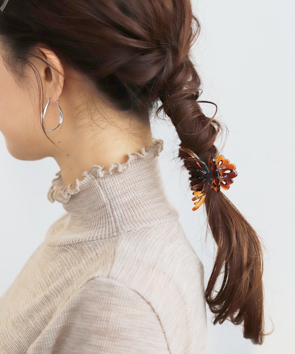 韓国 ヘアクリップ お花 バンスクリップ マットカラー ブラウン