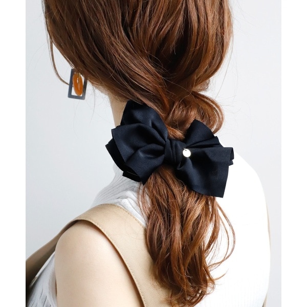 柔らかな光沢感とボリュームのあるリボンが、ヘアアレンジを上品に飾ってくれるバナナクリップ。