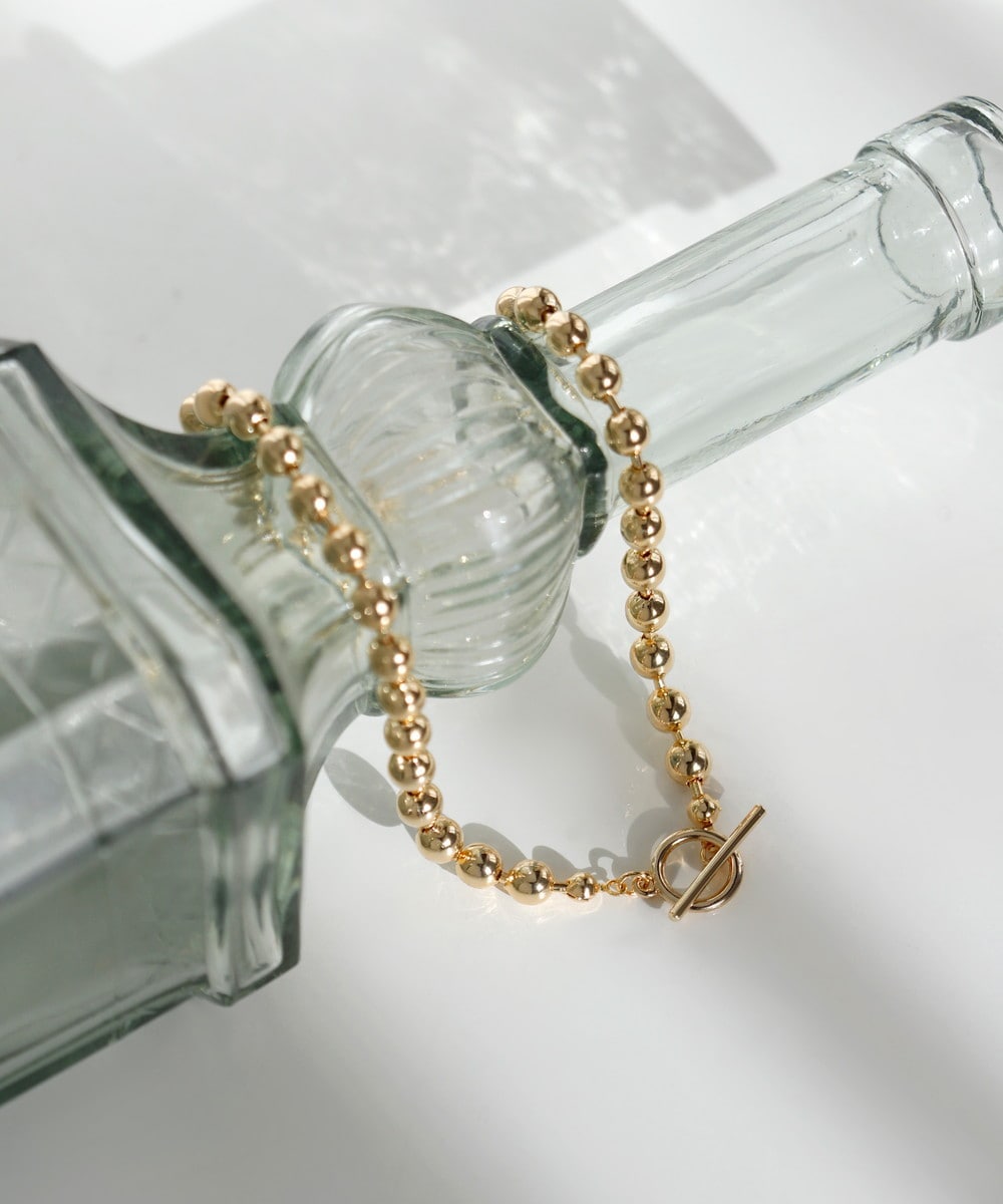 ボールチェーンがシャープな輝きを放ち、デコルテをクールな印象に導くネックレス。
