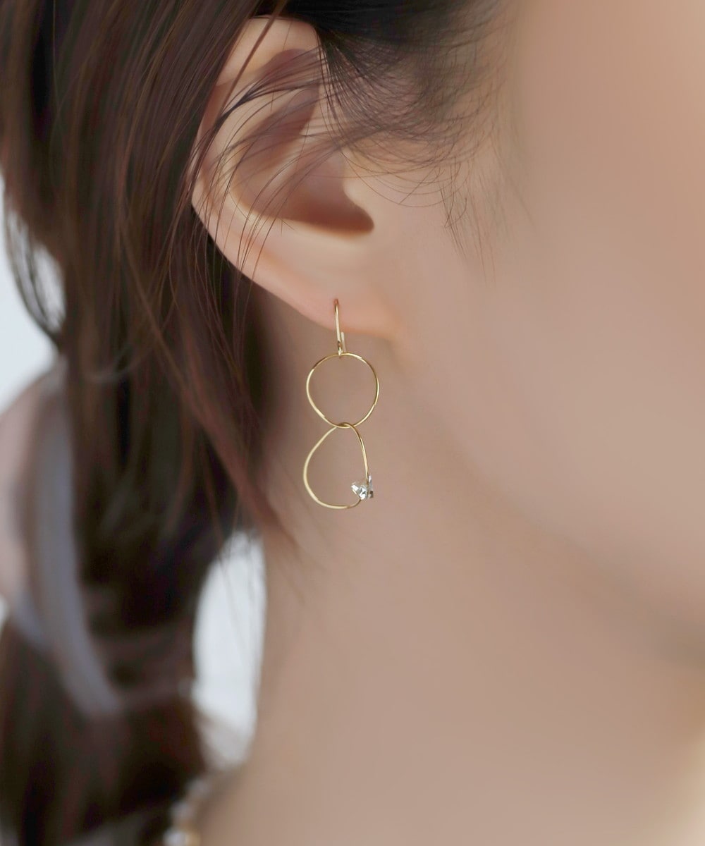 ゴールド サークル型、シルバー ビーズ付きピアスセット