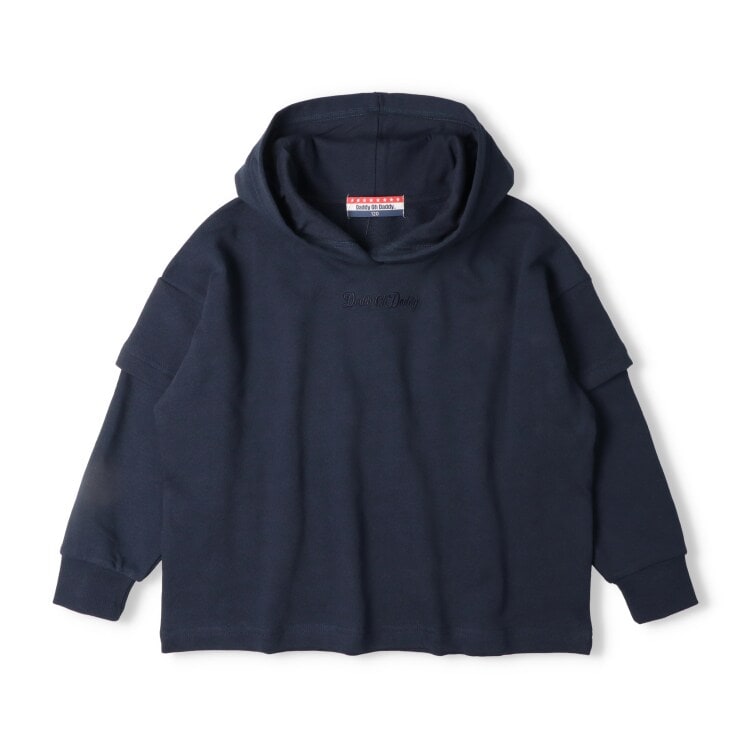 DaddyOhDaddyから新しく120~170cmのスクール、ジュニアアイテムライン。直営店では直営オンラインショップ「こどもの森e-shop」各店のみでの販売になります。【直営実店舗での販売はありません。】秋から春まで長く着られる裏毛素材のパーカー、フーディ。半袖と長袖を重ね着しているようなレイヤード風デザインがお洒落。ロゴの刺繍もポイント!【アイテム】トップス カジュアル お洒落 オシャレ かっこいい かわいい 可愛い 普段着 デイリーウェア お出かけ着 お外着 お外遊び着 子ども服 こども服 男児 男の子 ボーイズ キッズ トドラーサイズ 幼稚園 保育園 小学校 通園 通学 小学生 2025年秋冬物新作 丸高衣料 ロングスリーブ 長袖 ジュニアサイズ スクールサイズ 男女兼用 ユニセックス 女児 女の子 ガールズ 中学校 中学生 高校生 修学旅行 林間学校 校外学習 遠足 ダディオダディ コットン100% 綿100%  グレー 灰色 カーキグリーン 深緑色 ネイビー 紺色