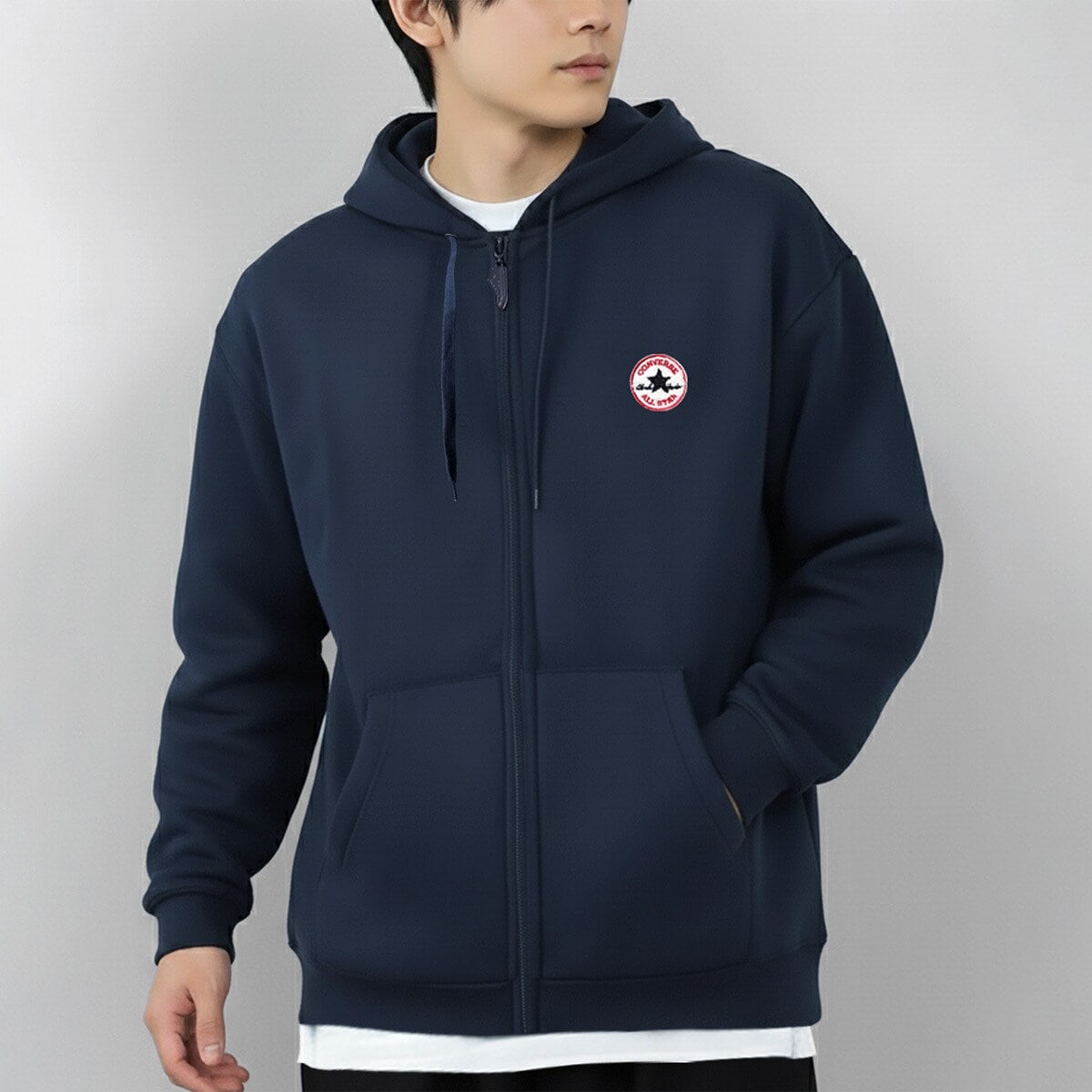 【ワンポイントロゴ刺繍入り】 裏毛 ジップアップ パーカー