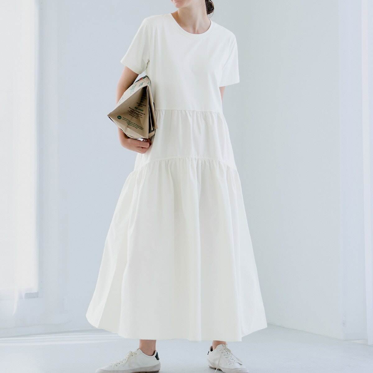 ポリエステル素材 / 無地 / ロング・マキシ丈 / 半袖 / LL・13号以上あり / S・7号以下あり / 洗える / ストレッチ / ライフスタイル / ドッキングワンピース / ウエスト切り替えワンピース / アウトドア / フレアスカート / ロング・マキシ丈