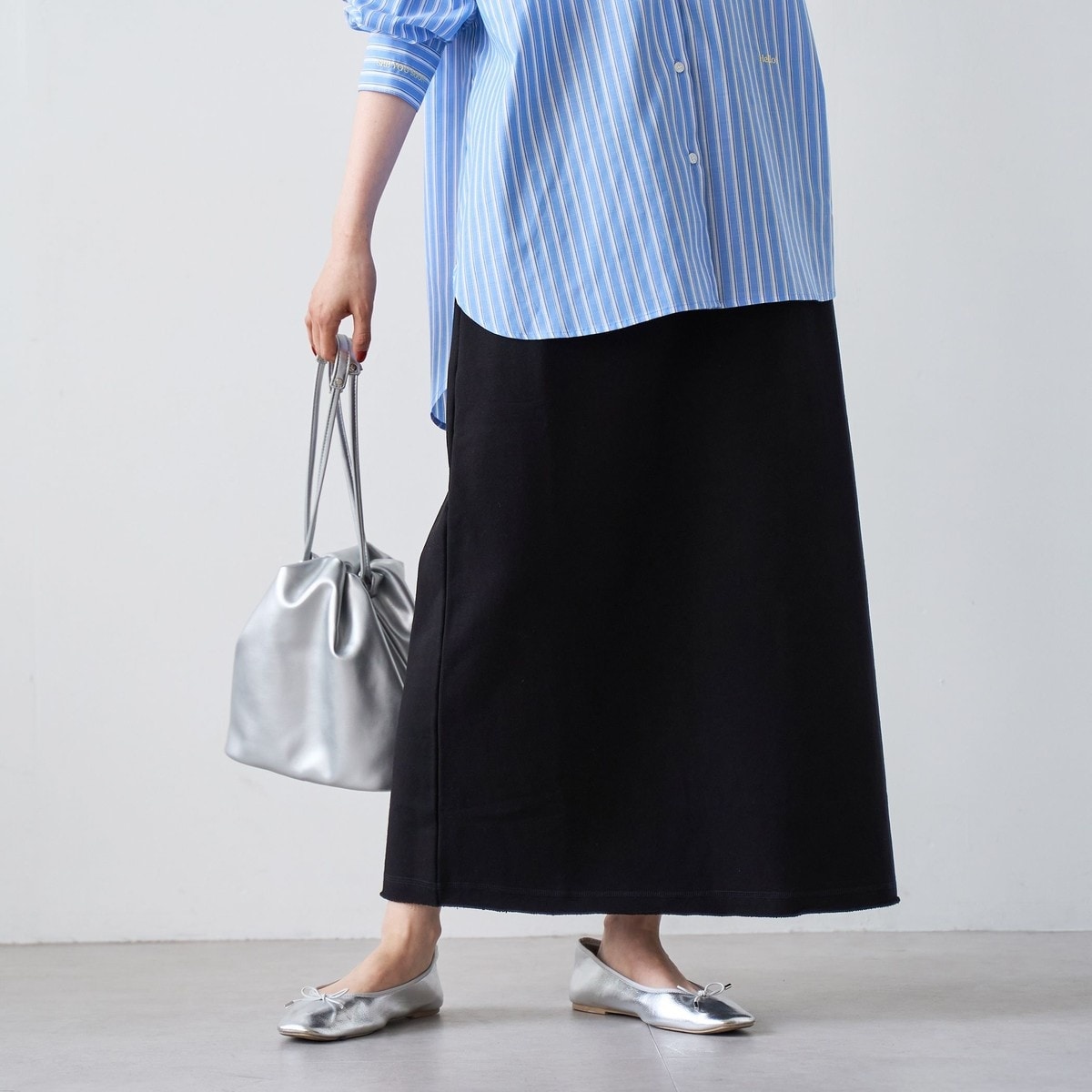 裏毛カットソー素材で快適。通年着回せる大人ナロースカート