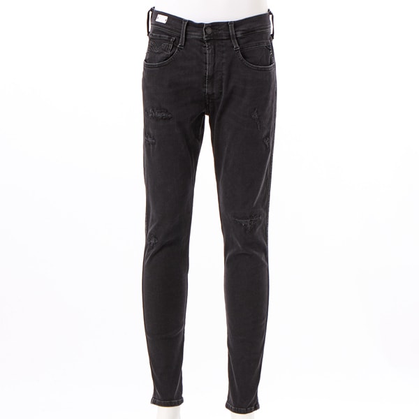 【BRONNY/ブローニー】ANBASSをベースに、腰やもも周りにややゆとりを持たせたきれいめシルエットに裾に非常にタイトなテーパードを加えたスーパースリムフィットです。レギュラーウエスト、ジップフライ。<br><br>究極のストレッチ性を実現し、リサイクル素材などを使って環境にも配慮したHyperflex Re-usedシリーズ。1960~70年代のオーセンティックデニムのような粒感"ソルト&ペッパー"をパワーストレッチ生地に再現した"ORIGINAL”のBroken & Repair加工。<br><br>10.5オンスの軽い生地感、ブラックデニムにブラックカラーを重ね染めしたオーバーダイ生地を、ブラックトーンにウォッシュ。<br><br>- エンザイムウォッシュ<br><br>- 手作業による軽めのひげ加工<br><br>- 軽くコントラストをつけて使用感を表現<br><br>- リペア加工とミシン刺し
