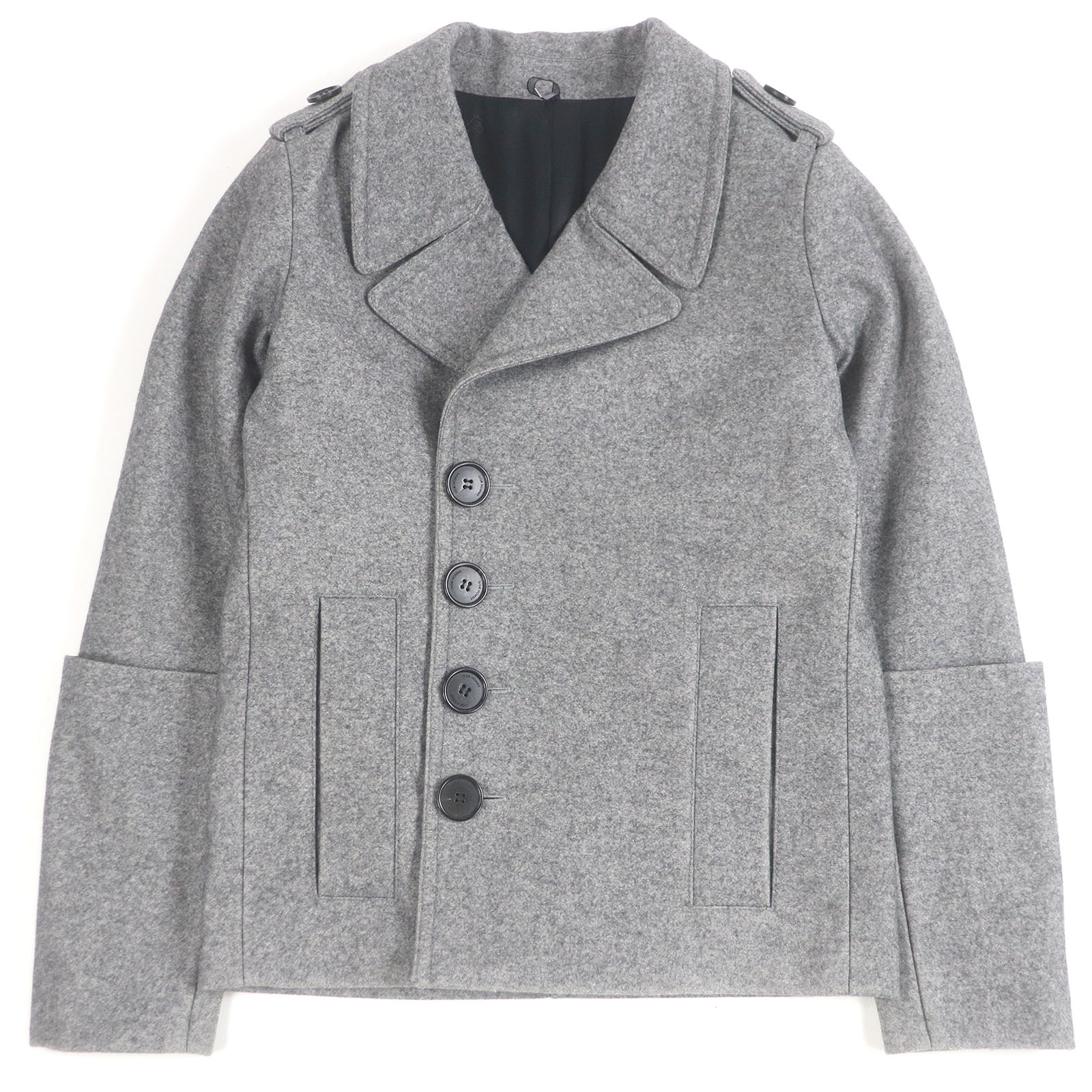 美品□Dior HOMME ディオールオム 363C357Z2175 ロゴボタン エポレット付き ステンカラーコート ブラック 48 イタリア製 正規品 メンズ【中古】