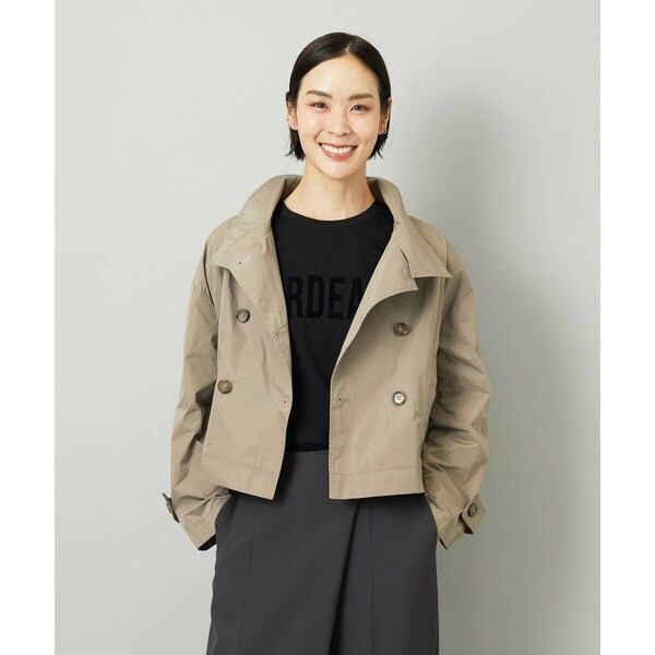 程よい光沢感としっとりとした風合いが上品なショートブルゾン。スタンドカラーとダブルボタンデザインがモードなアクセントを添え、メモリー素材ならではの立体的なシルエットを引き立てます。コンパクトな丈感はバレルパンツやスカートとも好相性。秋の始まりに軽やかに羽織れる一枚です。