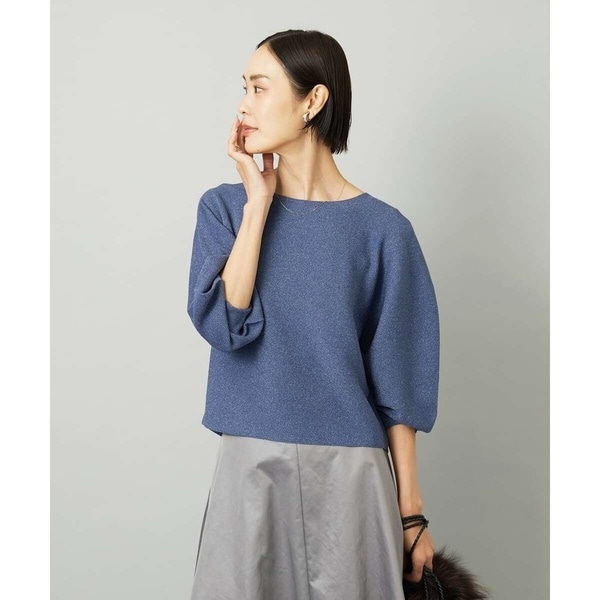 繊細なラメが上品にきらめく、ハリ感のある編地。ホールガーメントならではの縫い目のない仕立てで、美しいフォルムをキープしつつ立体的なパフスリーブを際立たせました。一枚で着映えするニットです。