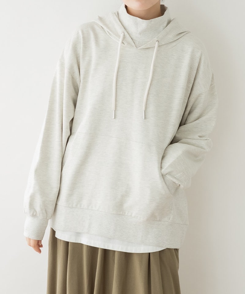 ハイネックリブ裏毛パーカー