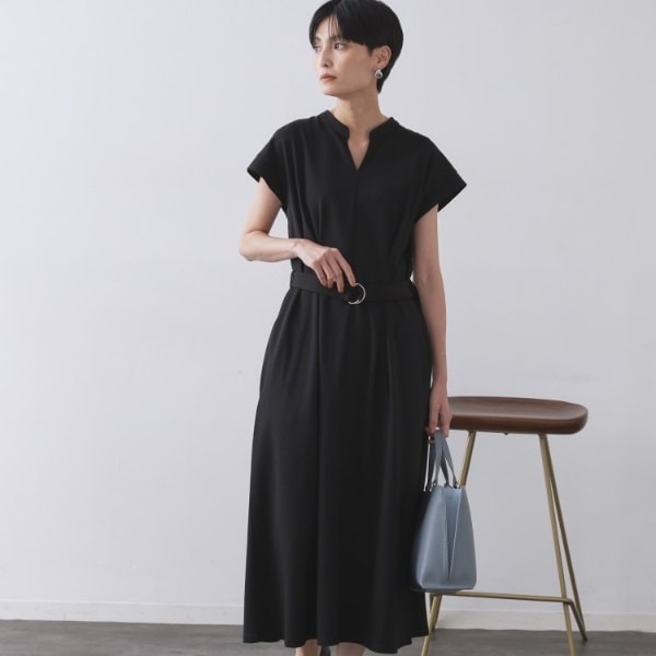 ・フレンチスリーブとスキッパーデザインが涼しげなワンピース。