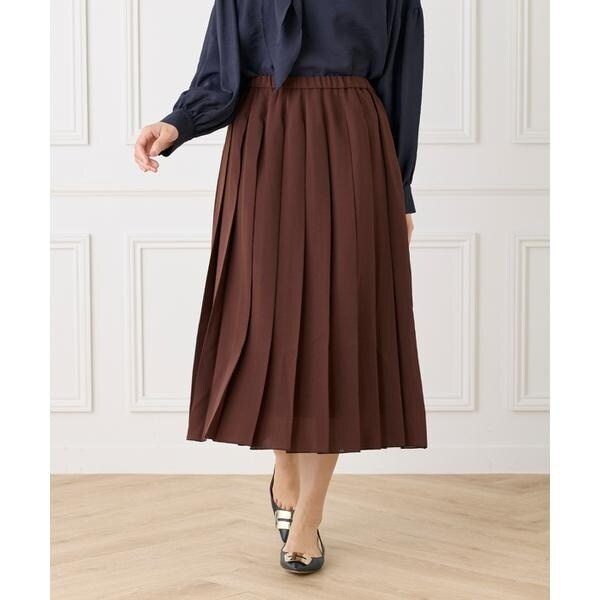 ■デザインシアーなボイル素材を使用したプリーツスカート。広め巾のプリーツで奥行きのあるモードな表情をプラス。すとんと落ちるすっきりとしたシルエットのロング丈でスタイルアップを叶えます。ウエストゴム仕様で快適な着用感にも配慮しました。華奢なウエスト仕様や裾始末、シアーな素材使いで硬さのない軽やかなイメージに仕上げました。■素材梳毛調のポリエステルボイル素材。反発力に優れ、光沢を抑えた糸を使用しています。特殊な加工による膨らみ感、ドレープ性、優しいタッチを兼ね揃えた万能素材。プリーツ加工がきれいに表現できる素材です。・左サイドファスナーあり・裏地あり■サンプル撮影商品画像の商品はサンプルです。実際の商品とはサイズや色味、素材、デザイン等の仕様が若干変更になる場合がございます。■カラーについては、可能な限り実際の商品に近いカラーで撮影をおこなっておりますが、照明の関係により実際の製品とは色味が違って見える場合があります。またパソコン・スマートフォンなどの環境により、若干製品と画像のカラーが異なる場合もございます。現物と画像のカラー差異については返品理由となりませんので、予めご了承ください。■サイズ表記はあくまで目安となります。