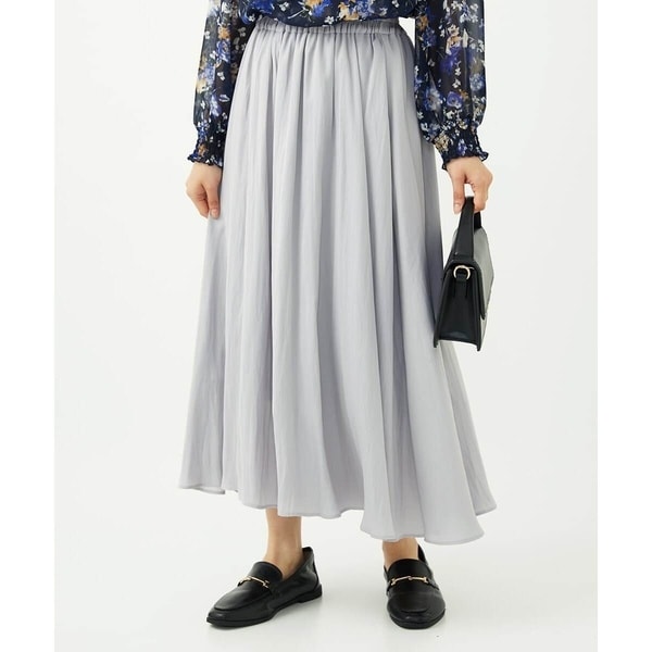 上品な光沢感と程よいパウダリータッチの起毛サテン地を使用。合繊素材なのでシワになりにくく、扱いのラクさも魅力的。裏地ありで秋から春にかけてちょうどいい素材感です。