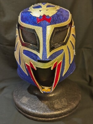 プロレスマスク KONDOU製【ザ・コブラ(青ラメ×黒・赤・銀特殊フチ)】 タグ付き 公認タグ付き サイン入り 参考写真付き