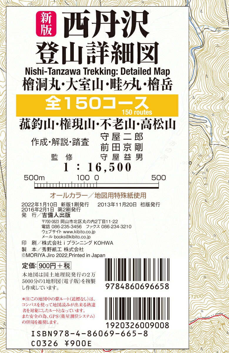2019年秋から2021年夏までの2年近い歳月をかけ、ほぼ全ての既存ルートの再踏査に加え、新ルートの踏査も行い、全150コースの「新版・西丹沢登山詳細図」が完成。*コンパクト新書版サイズ*重要な山名、地名、駅名に英語を併記、簡単な英文解説も記載。度重なる災害による登山道、林道の破損、それに伴うコースラインの変遷、廃道化や、笹枯れの進行による登山道の崩壊が多くみられ、今回、それらの現状を出来る限り詳しく記載。また、2019 年に発行した「丹沢西端・西道志登山詳細図」との接続部分や、「新版・東丹沢登山詳細図」の収録範囲である臼ヶ岳〜蛭ヶ岳〜姫次、寄〜雨山峠といった重要な連結部分も最新の調査結果を反映させて収録し、更には河村城址、奥山家道等、御殿場沿線のハイキングエリアも新たに加え、収録範囲は大きく拡大しました。最新の登山道状況を記載。重要な山名、地名に英語を併記、簡単な英文解説も記載、グローバル対応にしているのも大きな特長。