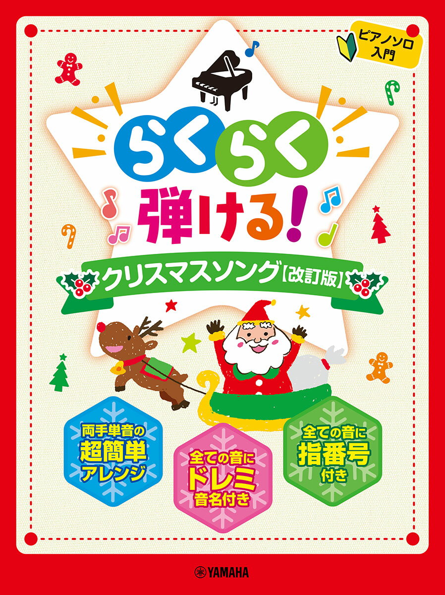 クリスマスのスタンダード曲を全30曲そろえました。こどもに大人気の「うさぎ野原のクリスマス」(中川ひろたか作曲)や「クリスマスのうたがきこえてくるよ」(新沢としひこ作曲)、「森のクリスマス」(増田裕子作曲)や定番のクリスマスソング、讃美歌、クラシック、クリスマスシーズンには必ずCMで流れるあの曲まで、楽しい曲を弾いて、クリスマスを盛り上げよう!※本書は、「ピアノソロ 入門 らくらく弾ける!クリスマスソング(GTP01094933、GTP01097791)」より、権利の都合上収載曲を一部差し替えた改訂版です(「恋人たちのクリスマス」を「クリスマスの12日」に変更いたしました)。■収載曲 [全30曲を収載][1] あわてんぼうのサンタクロースグレード: 入門[2] クリスマスのうたがきこえてくるよグレード: 入門[3] 森のクリスマスグレード: 入門[4] うさぎ野原のクリスマスグレード: 入門[5] ジングル・ベルグレード: 入門[6] サンタが町にやってくるグレード: 入門[7] 赤鼻のトナカイグレード: 入門[8] サンタクロースがやってくるグレード: 入門[9] クリスマス・ソンググレード: 入門[10] ママがサンタにキッスしたグレード: 入門[11] メリー・リトル・クリスマスグレード: 入門[12] 雪だるまのフロスティグレード: 入門[13] ウィンター・ワンダーランドグレード: 入門[14] ホワイト・クリスマスグレード: 入門[15] おめでとうクリスマスグレード: 入門[16] きよしこの夜グレード: 入門[17] もみの木グレード: 入門[18] もろびとこぞりてグレード: 入門[19] 神の御子はグレード: 入門[20] ひいらぎ飾ろうグレード: 入門[21] 牧人ひつじをグレード: 入門[22] あら野のはてにグレード: 入門[23] アメイジング・グレイス グレード: 入門[24] アヴェ・マリアグレード: 入門[25] そりすべりグレード: 入門[26] クリスマス・イブ / 山下 達郎グレード: 入門[27] すてきなホリデイ / 竹内 まりやグレード: 入門[28] クリスマスの12日グレード: 入門[29] レット・イット・ゴー 〜ありのままで〜『アナと雪の女王』よりグレード: 入門[30] 星に願いを『ピノキオ』よりグレード: 入門