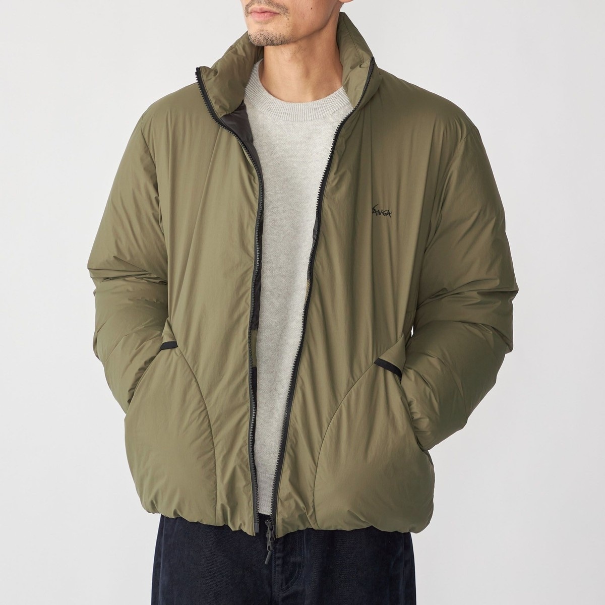 今回は適度なボリューム感があるスタンドタイプのダウンを別注しました。