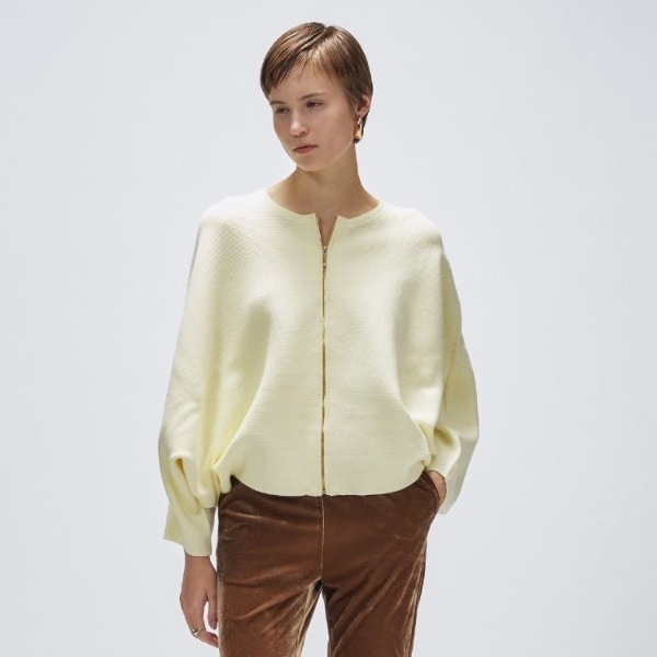 ドルマンスリーブがつくる抜け感ときれいめシルエットが魅力のニットカーディガン。
