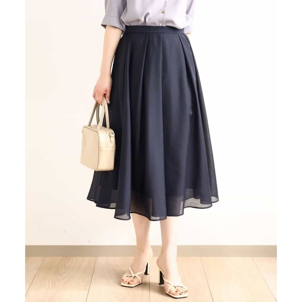 組曲【洗える・シワになりにくい】カラーボイル シアーフレアスカート ネイビー