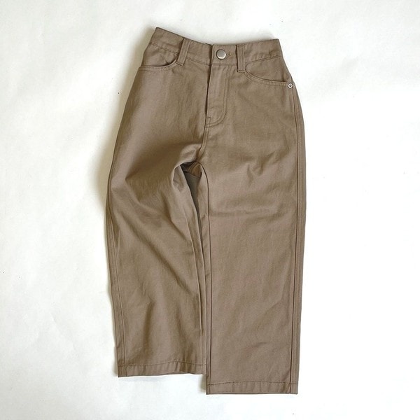 着用時に少したまる裾がポイント。フロントはインでの着用時にポイントになるようリベットをつけました。バックの大きめポケットでヒップ周りもきれいに見えます。ゆったりながらも脚長効果抜群の自信作です。