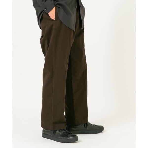 生地は厚手ながらストレッチ性のあるモールスキンを使用し、表面はしっかりとハリ感のある風合いと微起毛感が季節感にマッチし、楽さも兼ね備わった新作ボトムス。