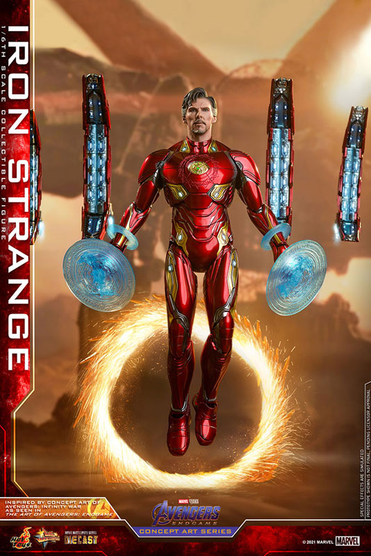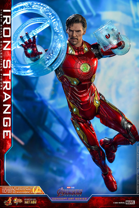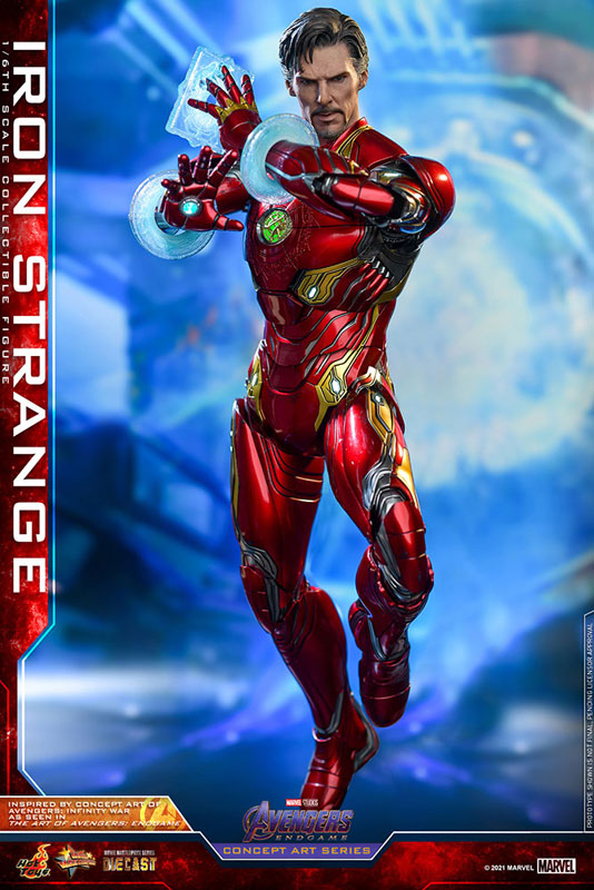 ボディーに合金を使用することでメカニカルなキャラクターの再現に適した、「ムービー・マスターピース DIECAST」に、マーベルの超大作アクション映画『アベンジャーズ/エンドゲーム』がラインナップ!コンセプトアートをベースに立体化する「コンセプトアート・シリーズ」第1弾として、ドクター・ストレンジがアイアンマンのパワードスーツを装着した、アイアン・ストレンジが登場だ!
