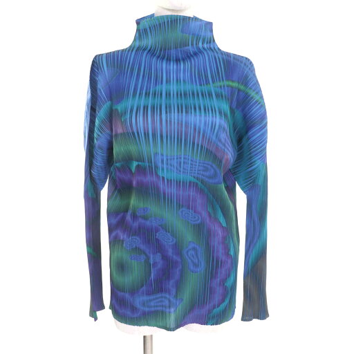 美品✨プリーツプリーズ イッセイミヤケ プリーツハイネックプルオーバー ネイビー