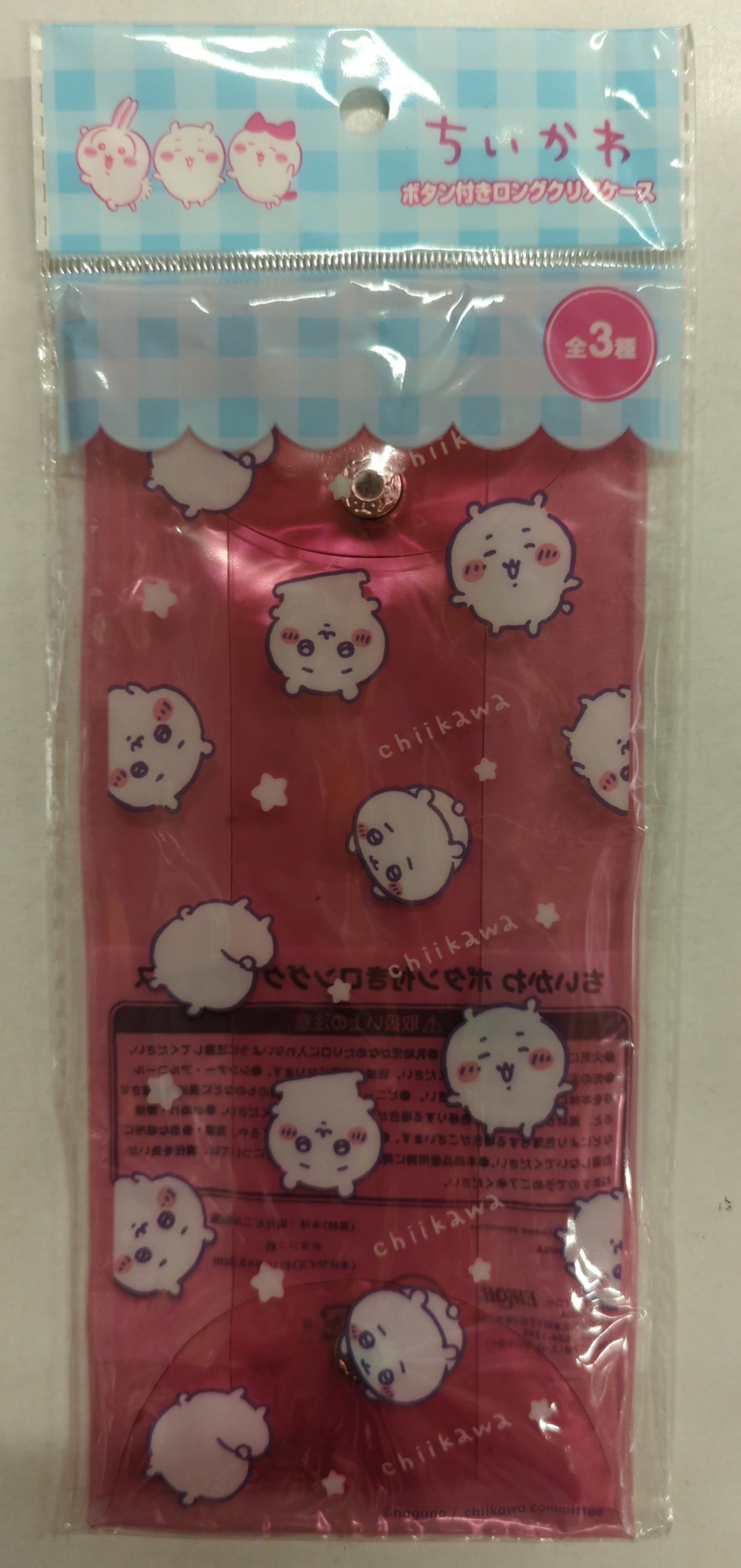 h145【新品・未使用品】ちいかわ ボタン付きロングクリアケース・chiikawa(ピンク) ハチワレ スケルトン キャラクターグッズ 小物入れ ペンケース 文具 赤 桃色 動物柄 エイコー キャラクター グッズ イヤホン 薬 リップ 化粧品入れ 通勤 通学