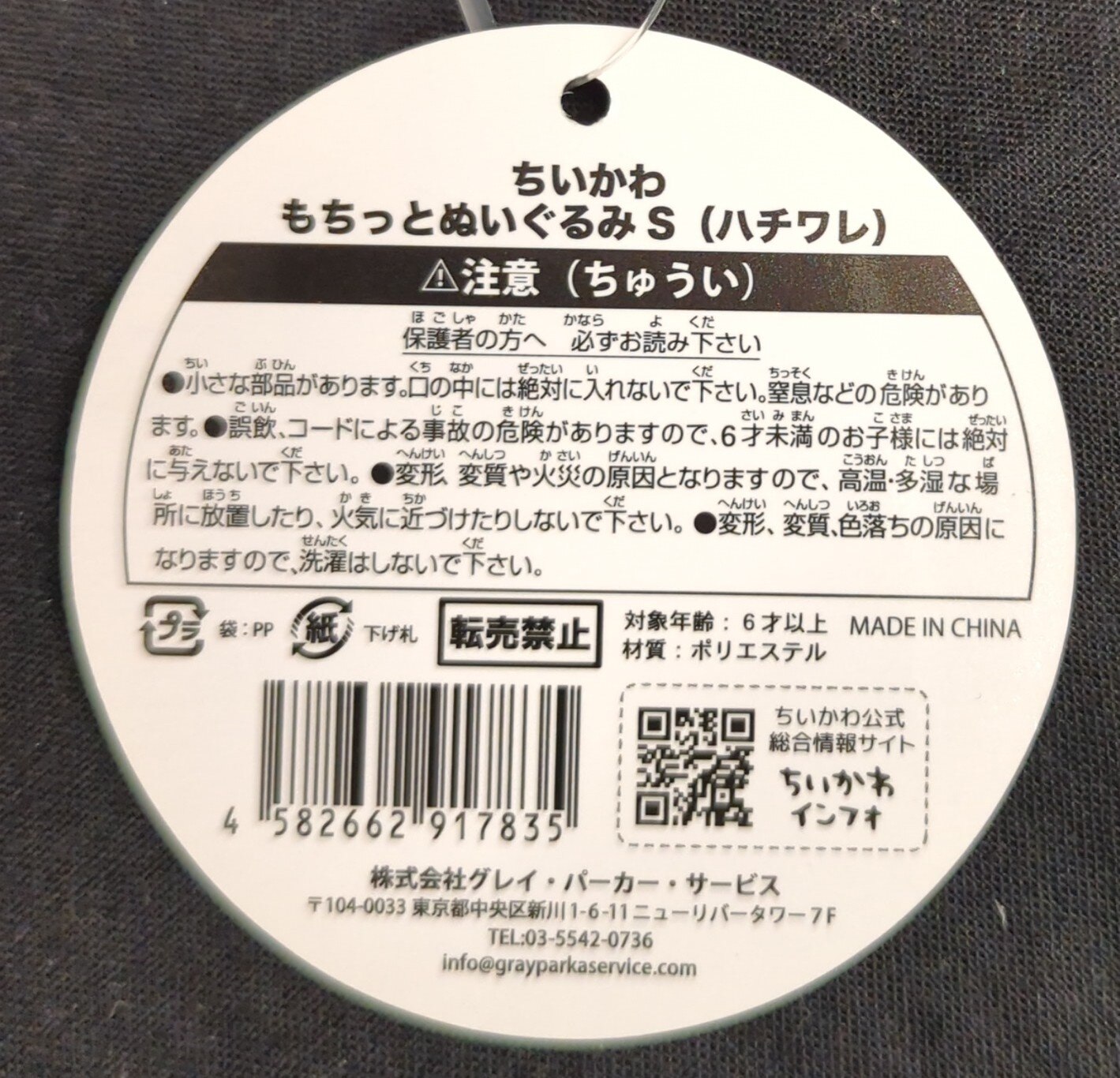グレイ・パーカー・サービス もちっとぬいぐるみS ちいかわ ハチワレ