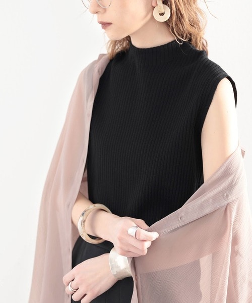 リブ編み ノースリーブニット ハイネック
