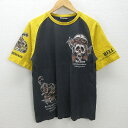 H■ブラッドメッセージ/BLOOD MESSAGE スカルプリントTシャツ/テッドカンパニー【44】黒黄/MENS■52【中古】