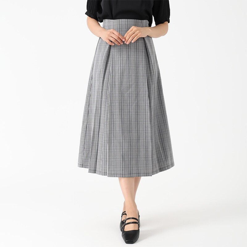 チェック柄のデザインがシーズンムードを高めるスカート。ふんわりと広がるフレアシルエットになっており、やわらかい印象を与えます。背面のウエストゴム仕様がポイント。トップスをタックインしたメリハリのある着こなしがおすすめです。